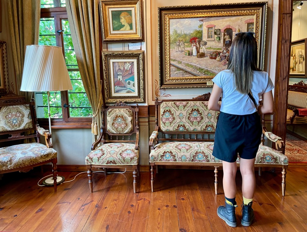 Finally, we visit the Roman Stadium (underneath the road in the above photo), and also take in two historic homes from the National Revival period in the Old Town. One of these, the Hindiyan House, is especially lovely; the other less so, but it seems to function more as an art gallery than as a historic home, so we enjoy the paintings.