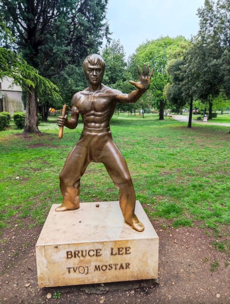 More bizarre still is the fact that Mostar ever had a statue of Bruce Lee: it was unveiled a day before Hong Kong unveiled its own Bruce Lee statue on the occasion of his 65th birthday in 2005. Apparently, Bruce Lee was huge in this part of the world and the statue was supposed to bridge the competing nationalisms in the city. You can barely make this stuff up, but it seems the Bosniak community and the Croat community took to complaining that the statue faced THEIR community in an aggressive fighting stance (objectively wrong: Google the statue and he’s clearly in a defensive stance). Inevitably, the statue became something of a symbol of tension between the two communities. Like I say, you can’t make this stuff up.