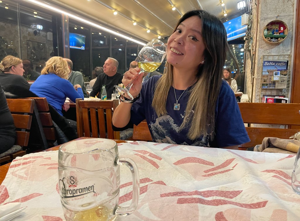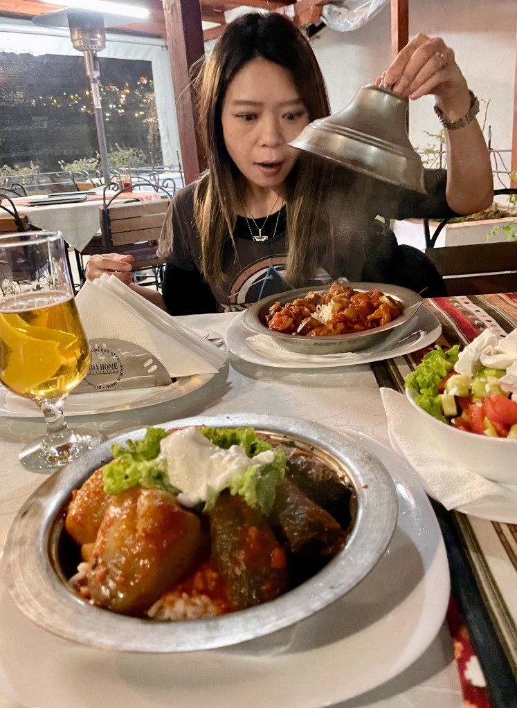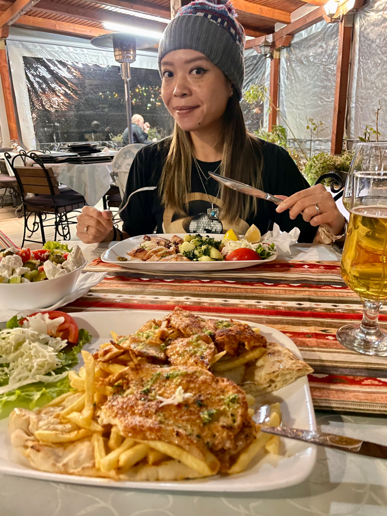 We chill for an hour or two before walking back into town for our Saturday night restaurant meal. A very friendly restaurant tout had handed us a flyer when we were in the Old Town on our first night. We held onto the flyer, so we decide to try the restaurant tonight. It’s excellent, although far more comfortable after I ask our waiter to turn on the outdoor heater next to our table!