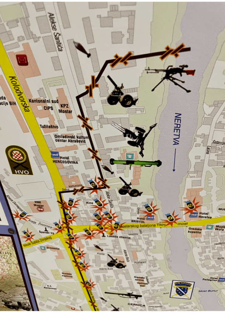 The Museum of War and Genocide Victims has a map of Mostar during the war and I realise that the neighbourhood we’re staying in was right on the front line and largely destroyed during the war. I suspected something dreadful had happened here on account of all the new blocks of flats, and the single war-ravaged shell of an old block nearby. This confirms as much. The museum is otherwise very similar – and occasionally identical – to its namesake museum in Sarajevo: lots of objects telling personal stories.