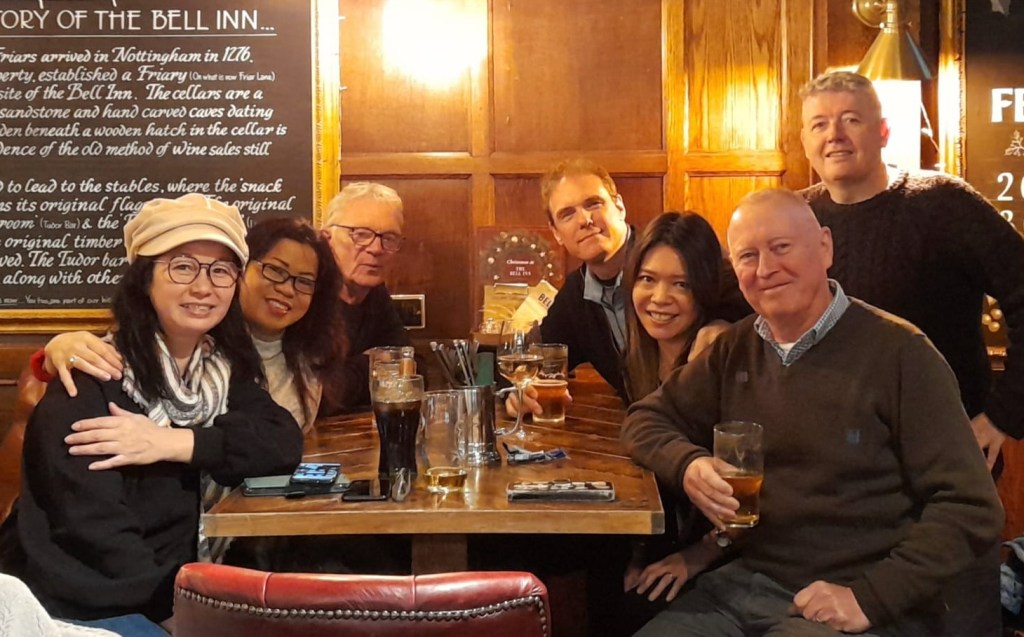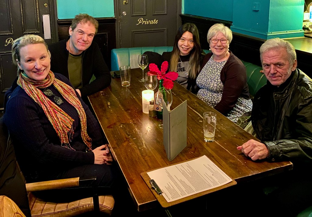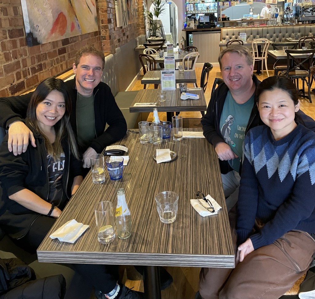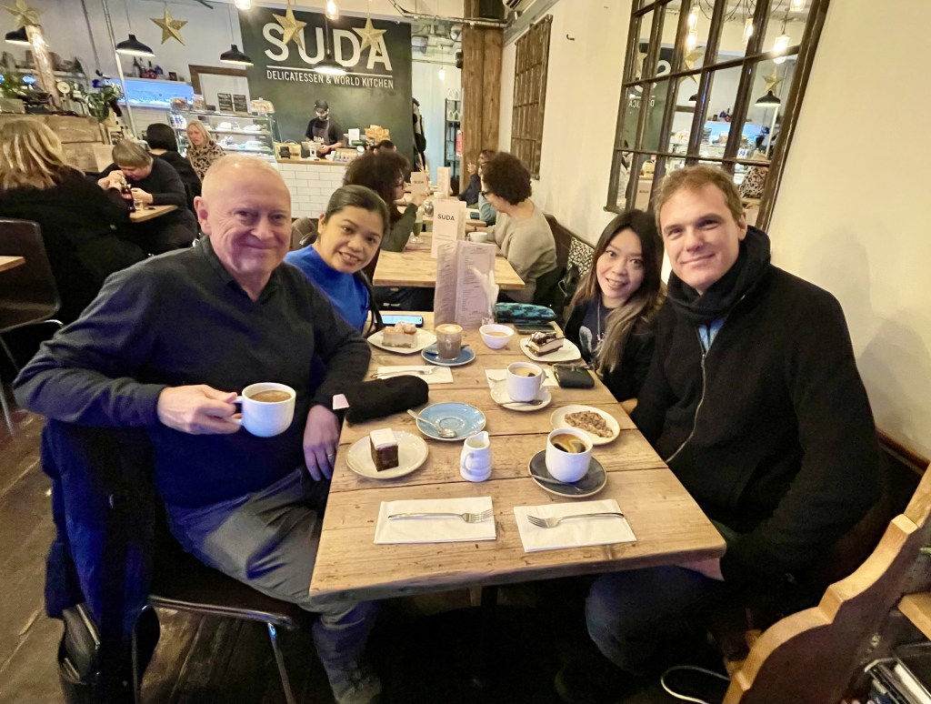 K slips out for lunch with another former Tiny colleague (they’re everywhere!) while I stay in the flat catching up on life admin. We spend the evening with Moll and Iain, with daughters Kate and Elliot, and Kate’s partner Harry, in leafy King’s Heath. It’s wonderful to see Moll after 20 years (and Ian and Kate after 23 years). We immediately carry on as if we saw each other yesterday. Moll looks inexplicably youthful for a woman about to turn 60. I’d forgotten just how much younger – nine years – Iain is than Moll: he was 26 the last time I saw him in Hong Kong on their own World Tour – with a three-year-old in tow – in far off 2001. I get to know Kate and Elliot over dinner before we all retire to the living room to chat and play Jackbox TV games. Moll’s second career as a podiatrist is going well, while Iain has put the teaching to one side to write his crime and fantasy novels full-time. Kate, now 26, and Harry have bought their own place out at Worcester, and Elliot, 20, will be heading to film school in Falmouth later this year. A fabulous evening of the sort that by its very nature can only happen a handful of times in a lifetime.