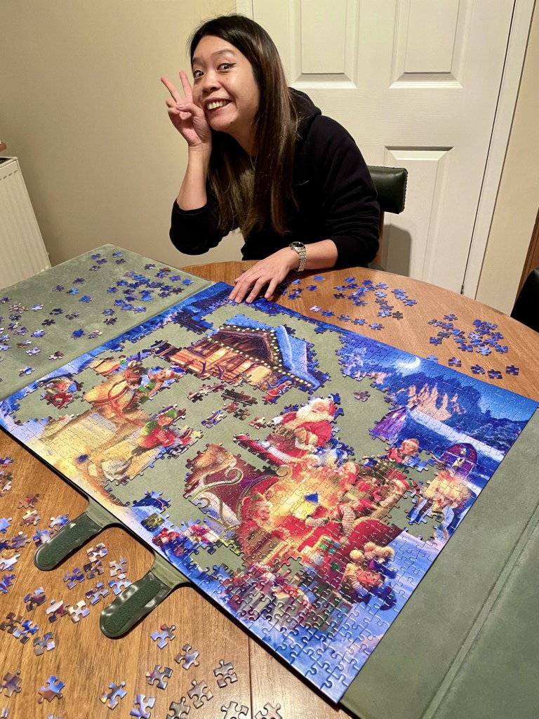 I have a eye test appointment to keep so we head into Fareham. I’d always been impressed with the eye care offered in Hong Kong, but – bearing in mind that you get what you pay for – the GBP30 eye test at SpecSavers is on another level to what I’m used to. I walk out with a new prescription and with two new pairs of glasses on order. After a pub lunch with readily-available zero-alcohol beer, we head back to mum’s, where we all muck in with the Christmas jigsaw.