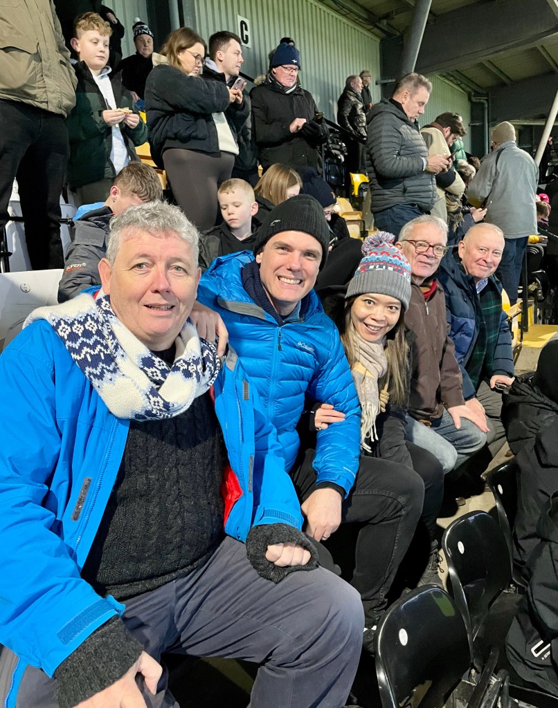 A fantastic start to the new year with old friends. James and Clara arrive from Hereford in time for lunch at Kev and Threycia’s. K, Kev, James and I hop in an Uber to Meadow Lane, where we meet up with John to watch Notts Country throw away a slender lead to eventually lose 1-2 to top-of-the-table Walsall. The crowd for this League Two match is almost 13,000 – more than Premier League Bournemonth typically draw. The crowd makes for a good atmosphere, as does the gathering dusk over the industrial skyline beyond the stadium.