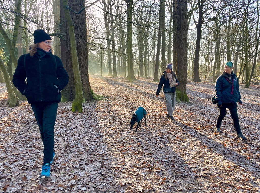We’re adopted by mum’s U3A walking group as we trudge around the environs of Stansted House near Rowland’s Castle, just over the border in West Sussex. There’s an austere beauty to the fields and woods on a damp, grey winter’s day. I’ve met a couple of the group before at other U3A socials. Everyone is very accommodating and keen to chat.