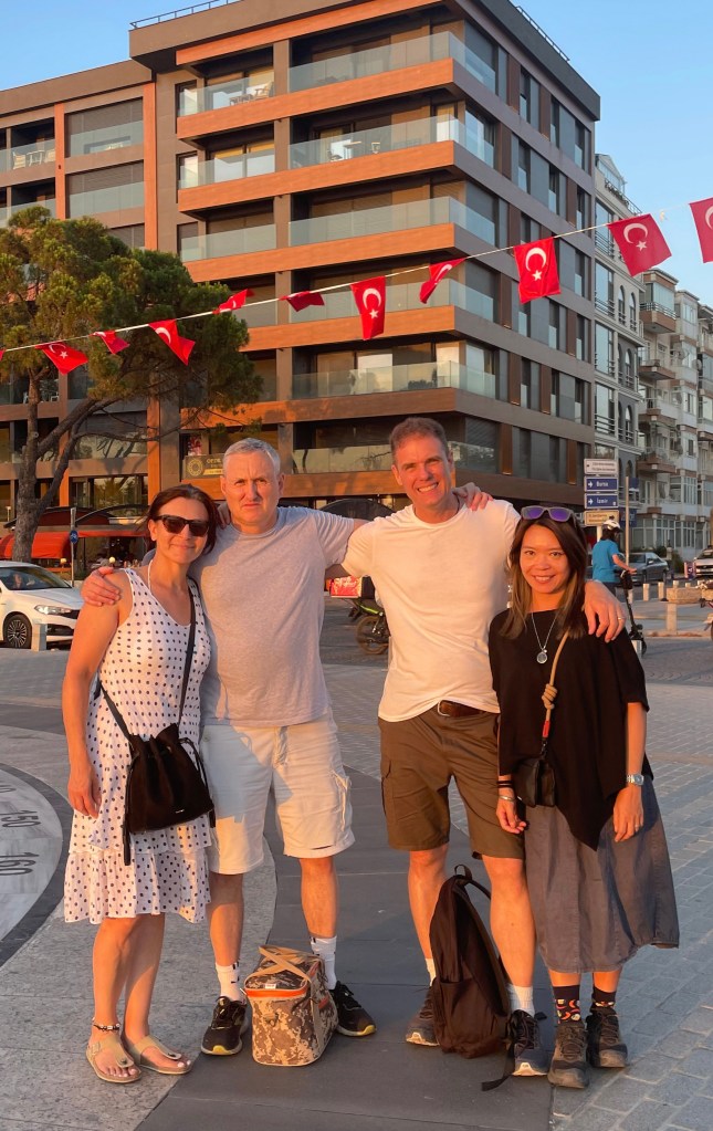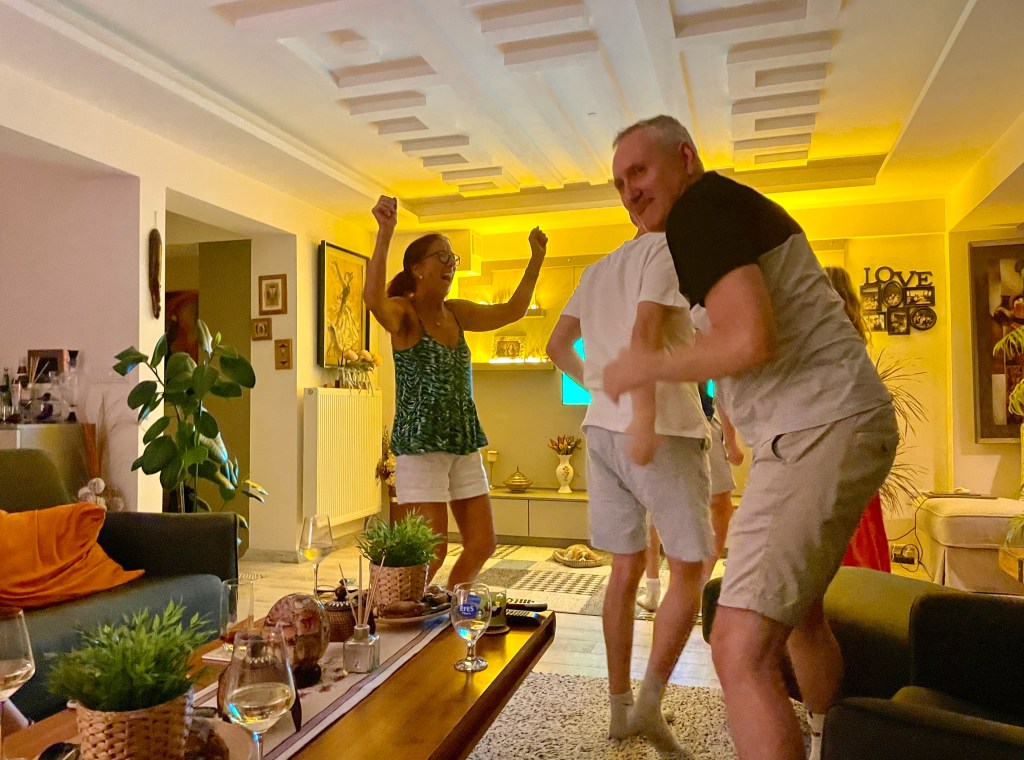 On Wednesday night, we walk across Çanakkale to Graeme and Selin’s friends Enver and Cecilia, who lay on a superb spread before we watch England beat the Netherlands 2-1 to reach the final of Euro 2024. Ollie Watkins scores the winning goal at 89:59. A superb moment.