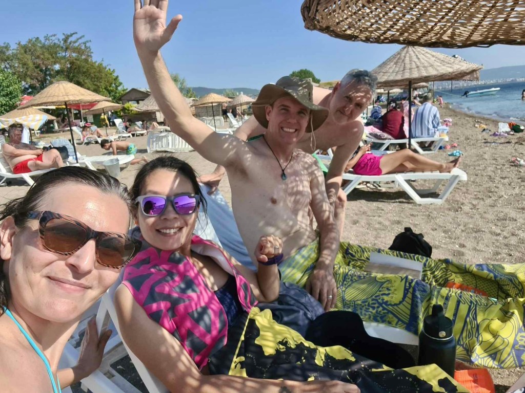 Our time in Çanakkale is nearing an end. I’m busy with work again, but mid-afternoon we join the Bridges on the local beach, where we mess about in the water with a ball for hours.