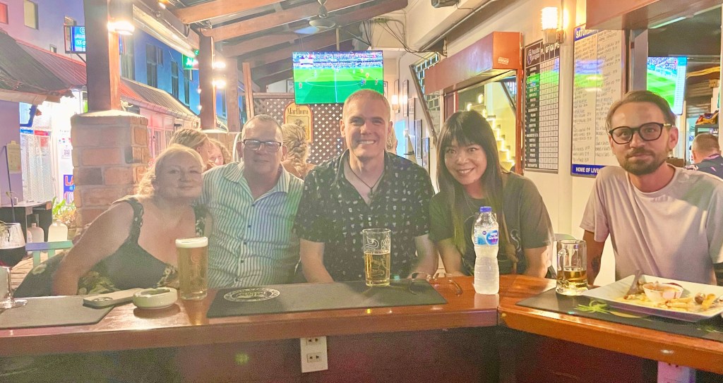 After all that activity yesterday, our middle-aged bodies are feeling the pain today. It’s a day to lie low and recharge. We eventually head out to meet Jason, Clare and Sam in Chaweng to watch Southampton predictably lose to Wolves. This time really is the last time we’ll see them, at least for the time being. I’m glad we made the effort to go ‘downtown’ and meet up despite the match not kicking off until 10pm. It’s more conversation than football as Saints go down 1-2 and edge closer to the unwelcome record of amassing fewer points in a season that Derby did 20 years ago.