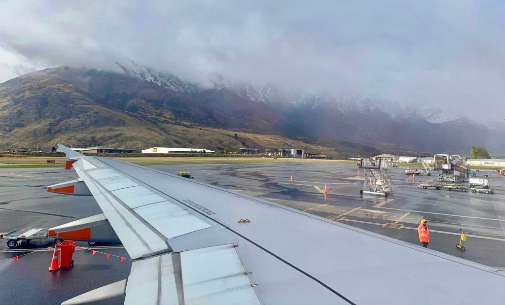 As we walk to our plane on a cold, drizzly morning in Queenstown, we see that the first snow of the season has fallen overnight on the mountains above the town: