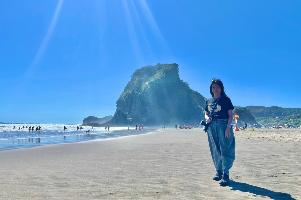 Time to move on again, this time to Sue and Claire in Gulf Harbour. At Martin and Donna’s recommendation, we first take a detour to Piha, a spectacular volcanic beach between two stacks of rock. The Auckland suburbs seem to go on forever, but once we’re finally in the NZ countryside, it’s pure pleasure.