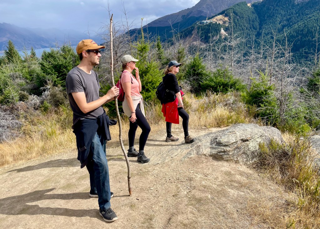 We’ve been tearing around since Thursday, so today is a day for staying more-or-less put. The five of us, minus mum, trudge our way to the top of Queenstown Hill. It’s a surprisingly tough climb in places and in jeans and one too many layers, I’m not really suitably attired. At the summit, we stop a while to admire the views and watch a plane take off far below. The path down takes us through deep, dark coniferous forest and is precipitously steep in a couple of places.