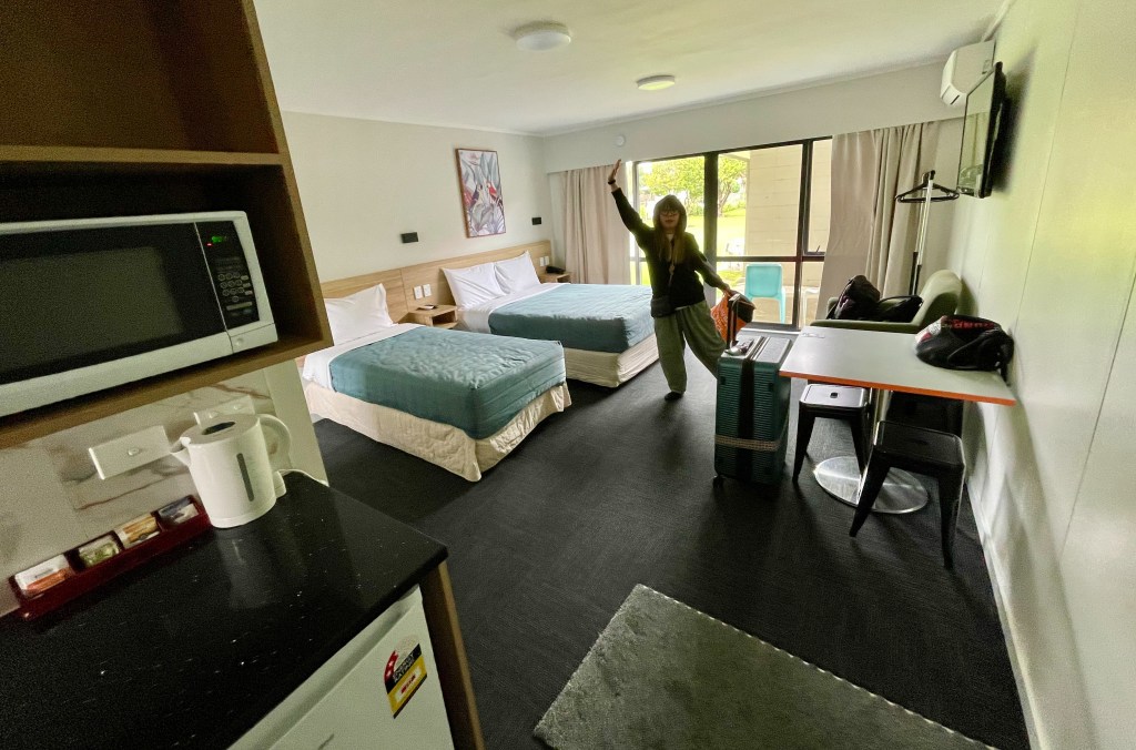 Back in an equally damp Auckland, we say goodbye to mum and Sue, who drives us to our motel close to the airport. The room is spacious and perfectly fine to lounge in for the rest of the afternoon: