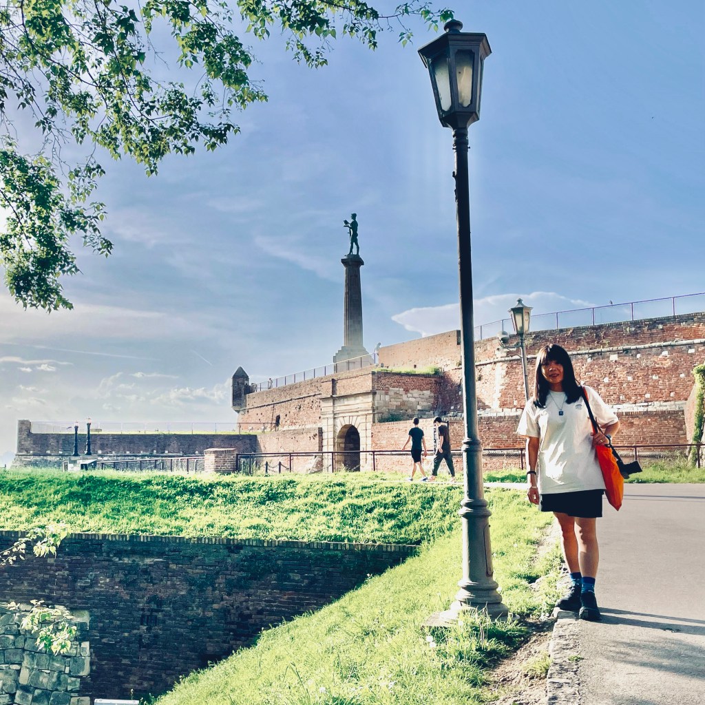By the time we’ve freshened up and rested, it’s already late afternoon. The hotel is right next to Kalemegdan – the ancient walled city of Belgrade – so we go for an exploratory wander. Apart from a modest group of Chinese, very few tourists seem to be around today, although I do hear Turkish spoken at one point. Kalemegdan is pleasant enough: it keeps us occupied for the best part of an hour with its commanding views of the confluence of the Danube and Sava rivers, its endless meandering paths, and its welcome smell of freshly cut grass.
