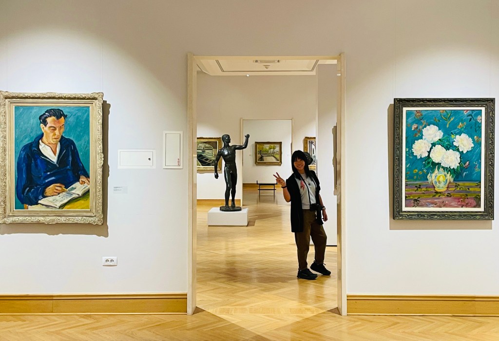 We spend the next two hours working our way around this excellent three-floor art museum, which we would very happily have paid to see. Like the art section of the Serbian National Museum in Belgrade, the explanations in each room are first class. The gallery even includes bilingual laminated crib notes for many of its paintings: sit down in a room of your choice on a comfy soft-furnished bench, pick up a crib note sheet, and read about the painting in front of you. A few others are here today, but more often than not we have each room entirely to ourselves. It’s all very civilised.