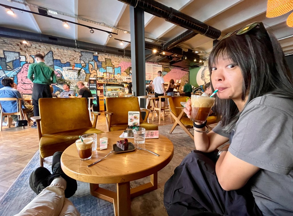 May 1 is a holiday in Serbia. Almost everywhere is closed and the streets are strangely quiet – quieter than they were on Sunday. The gallery we head for in the afternoon is, as we expected, closed. Instead, we find an open cafe off Novi Sad’s main square and manage to nab the best seats – plush velvet ones – for an iced americano and a slice of chocolate cake.