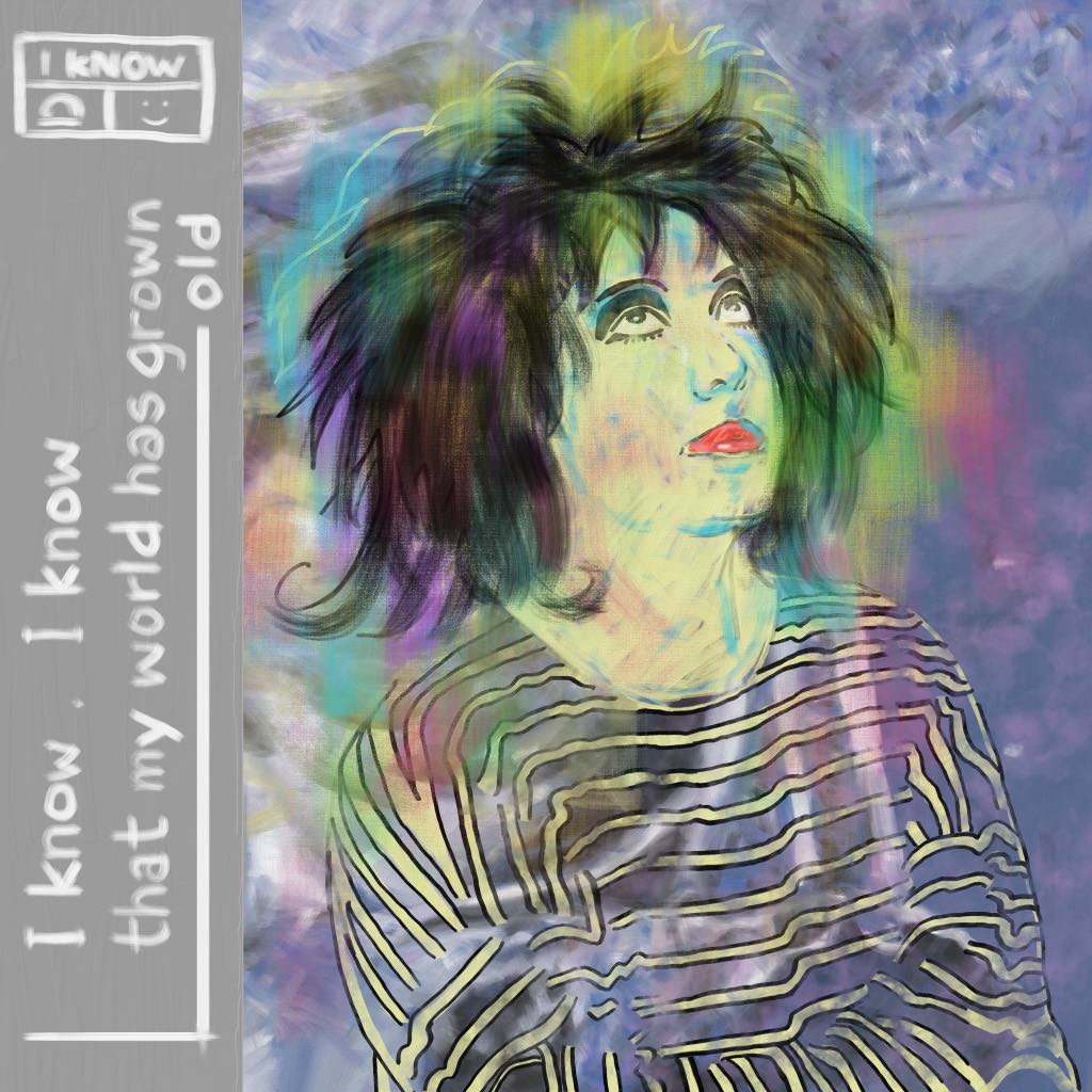 By mid-afternoon, I’ve finished work and pop out for a few groceries and to grab some fresh air. K’s working on one of her music series of paintings: she completes a wonderful portrait of Robert Smith.