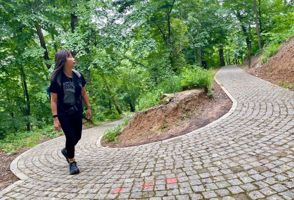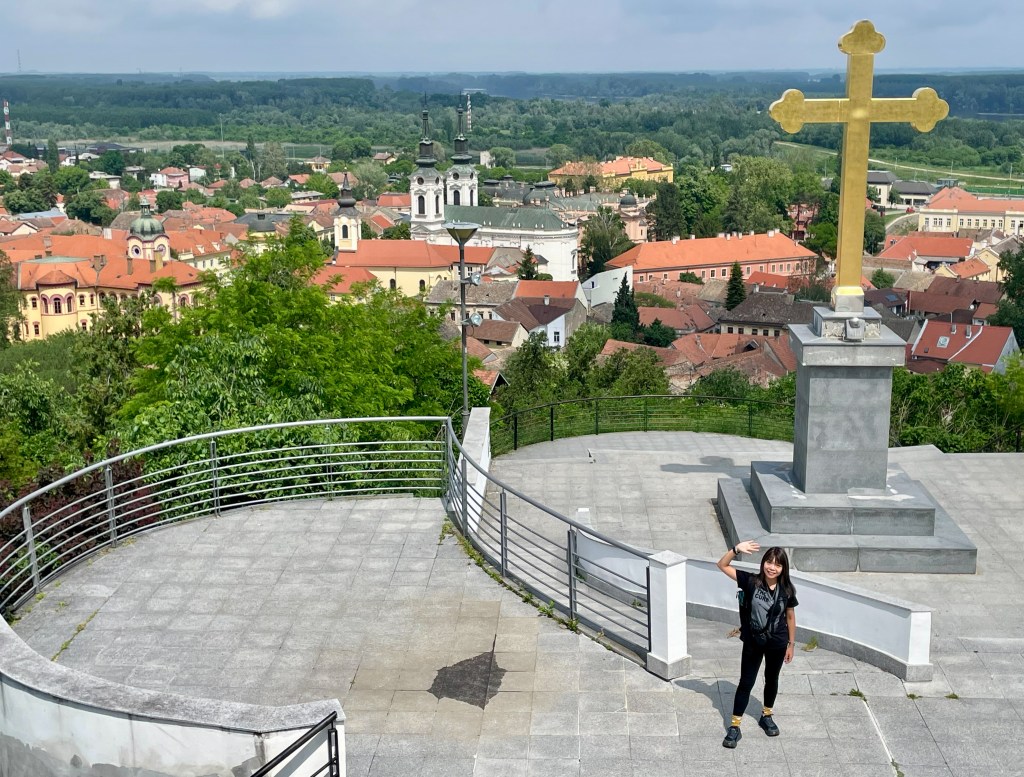After each scoffing an enormous toasted sandwich, we return to the car and drive towards Fruska Gora National Park. Fruska Gora – a former island in the ancient Pannonian Sea – is the only hill for miles. It reminds me of a forested twin of Hong Kong’s ‘Jelly Mould’. The little-used road is full of bumps and potholes but eventually leads us to the beginning of the hiking trails that lead through the park. We’re the only ones here and we’re not sure which way to go. Then I spot someone descending a zig-zag path and realise this is the paved path up to the grave of Branko, a Serbian romantic poet. It’s gives us a destination to head for, so we follow it: