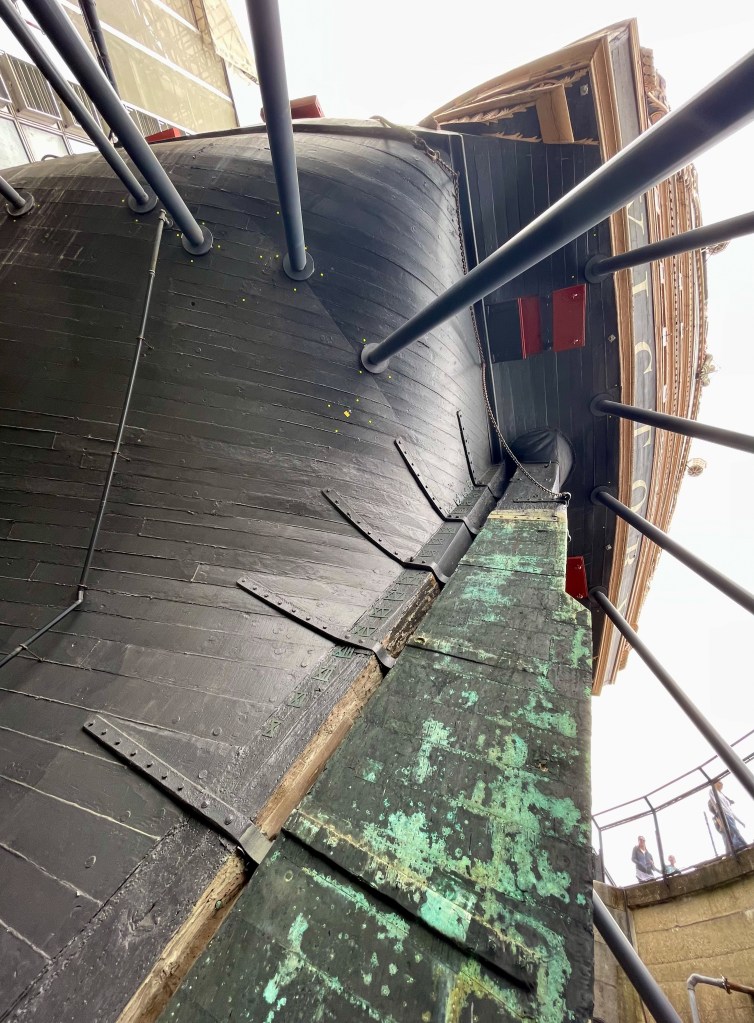 I last visited Portsmouth Dockyard in the 70s and still have vague memories of exploring HMS Victory in its dry dock. Much has changed as we visit Portsmouth Historic Dockyard today. The audio guide to the Victory does everything possible to convey how terrifying it must have been to experience an early nineteeth century naval battle, with the grim prospect of being ripped apart by flying shot and splintered wood. The size of the Victory is also genuinely awesome—from the bottom of the dry dock standing at the foot of the rudder, it feels like an eighteenth century skyscraper: