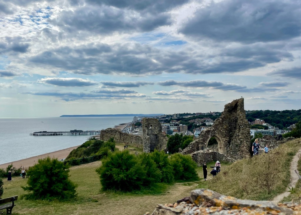 Behind us, fine views stretch out to the distant outline of Beachy Head at the end of the South Downs. Ahead lies a small headland topped by the crumbling ruins of Hastings Castle, built by William the Conqueror immediately before the Battle of Hastings. After a lap of Hastings Pier and a brief detour into the local mall for practicalities (I somehow come away with a Creedence Clearwater Revival t-shirt for £3.99), we climb the backstreets to explore the castle. Its appeal lies more in its views and its historical significance rather than in the structure itself, half of which collapsed into the Channel centuries ago. We hear a Chinese family speaking Hong Kong-accented Cantonese and chat, in English, long enough to establish that they left Sham Shui Po three years ago for London.