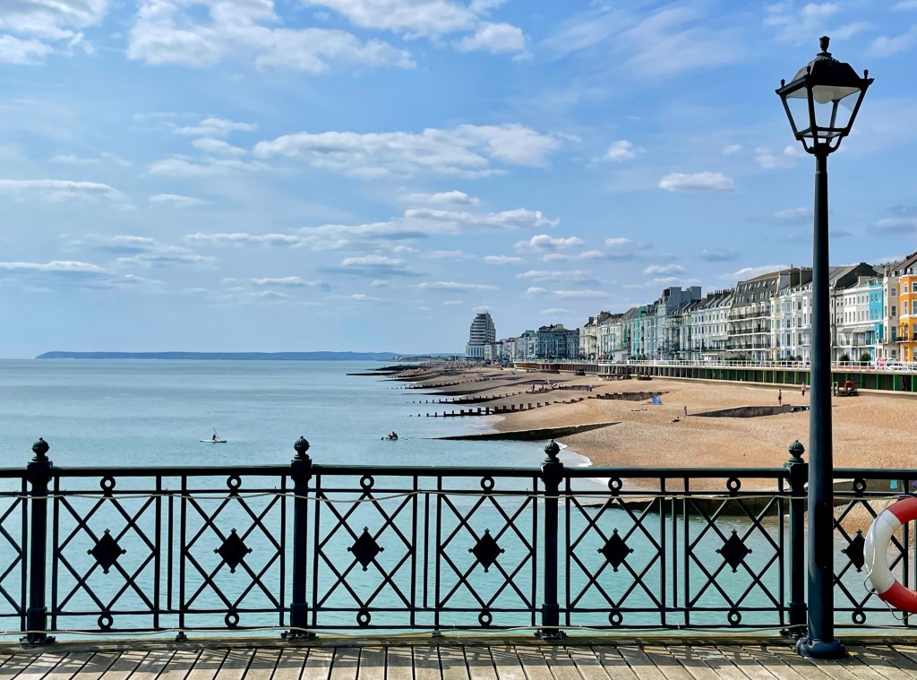 Our train to St Leonards-on-Sea is delayed by a fire somewhere on the line at Cosham. The train eventually arrives 20 minutes late and it seems we’ll miss our connection in Brighton. We say goodbye to mum on the platform and climb aboard. Things improve when the guard announces that to claw back a few minutes, the train will skip several stops. As if by magic, we arrive in Brighton comfortably in time to switch trains and continue along the coast to St Leonards, where Karen and Lee are waiting at the station.