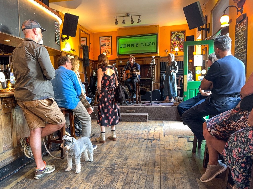 Back down in Hastings old town, we while away an hour with tea and a generous slice of Victoria sponge before meeting Lee and a somewhat recovered Karen at the Jenny Lind, a small pub that doubles as a local music venue. Every Friday, it hosts a folk sundowner, and tonight I couldn’t think of anywhere I’d rather be. It’s pleasantly busy without being packed. The customers are clearly here for the music. And it serves an excellent zero alcohol pale ale with a hint of mango.