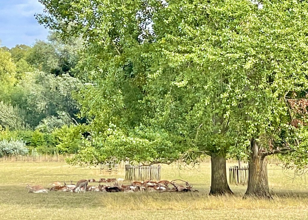 Addison’s Walk begins the far side of a small stone bridge over the River Cherwell. The circular walk was a favourite of C.S. Lewis, a Fellow of Magdalen College, and circles a water meadow where, from a distance, we see a herd of deer resting under a plane tree. A few others are walking the path on this sun dappled afternoon, but we mostly have it to ourselves.