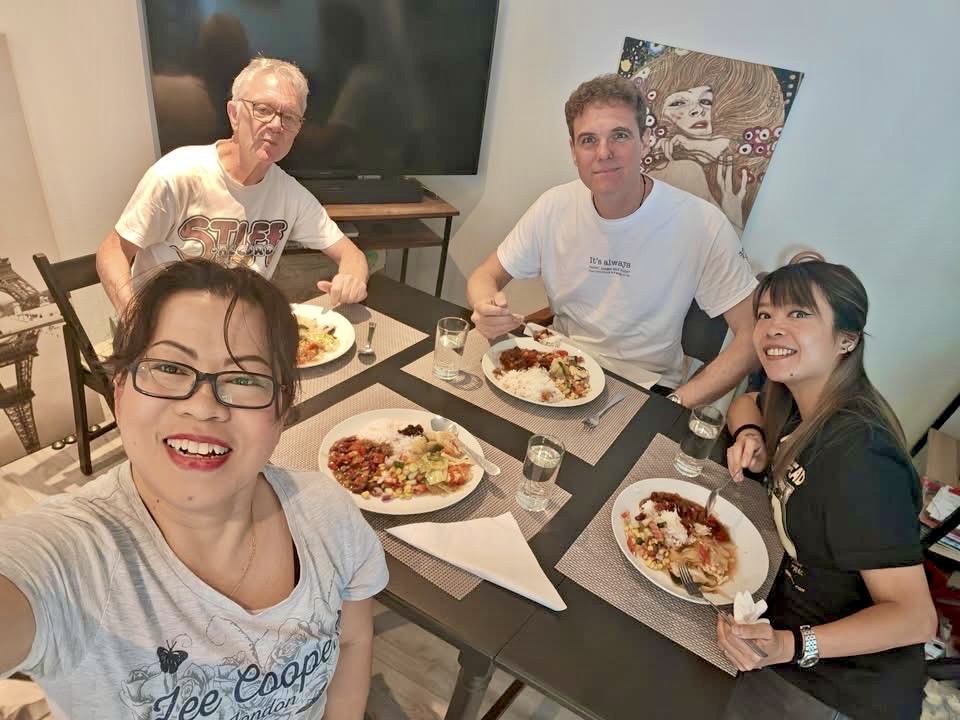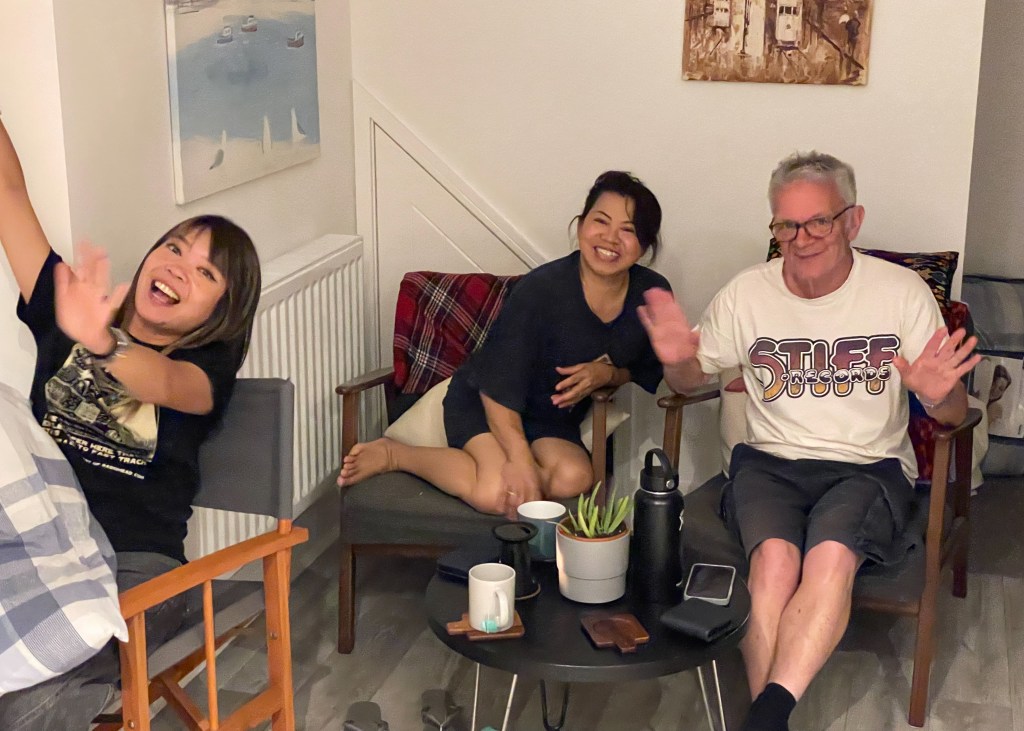 Our Airbnb doesn’t have a TV, so we balance an iPad on a chair and settle down to catch up with YouTube posts we’ve missed while staying two-and-a-half weeks with family.