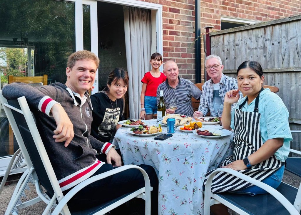 The mouthwatering aroma of barbeque smoke greets us before we reach Ashchurch Drive. While we’ve been in the park, Judy’s been busy grilling heaps of chicken and sausages. We all sit in the garden chatting and eating until Kev departs at sunset, then move inside as the almost-September evening turns cool.