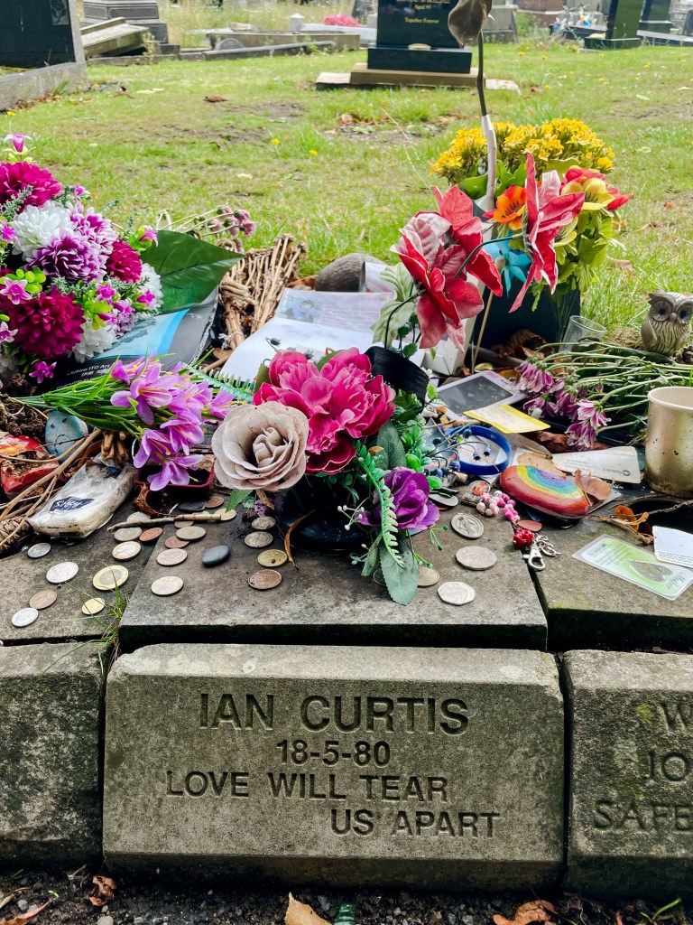 In the afternoon, we experiment with leaving Percy on his own for a couple of hours. Ian Curtis’ ashes are buried in Macclesfield Cemetry, which just happens to be adjacent to our local Sainsbury’s. (Yes, ‘Love Will Tear Us Apart’, but just look at the very reasonable price for Mr Kipling’s reduced-sugar apple pies.) We pause to reflect at Mr Curtis’ memorial stone before popping in for groceries.