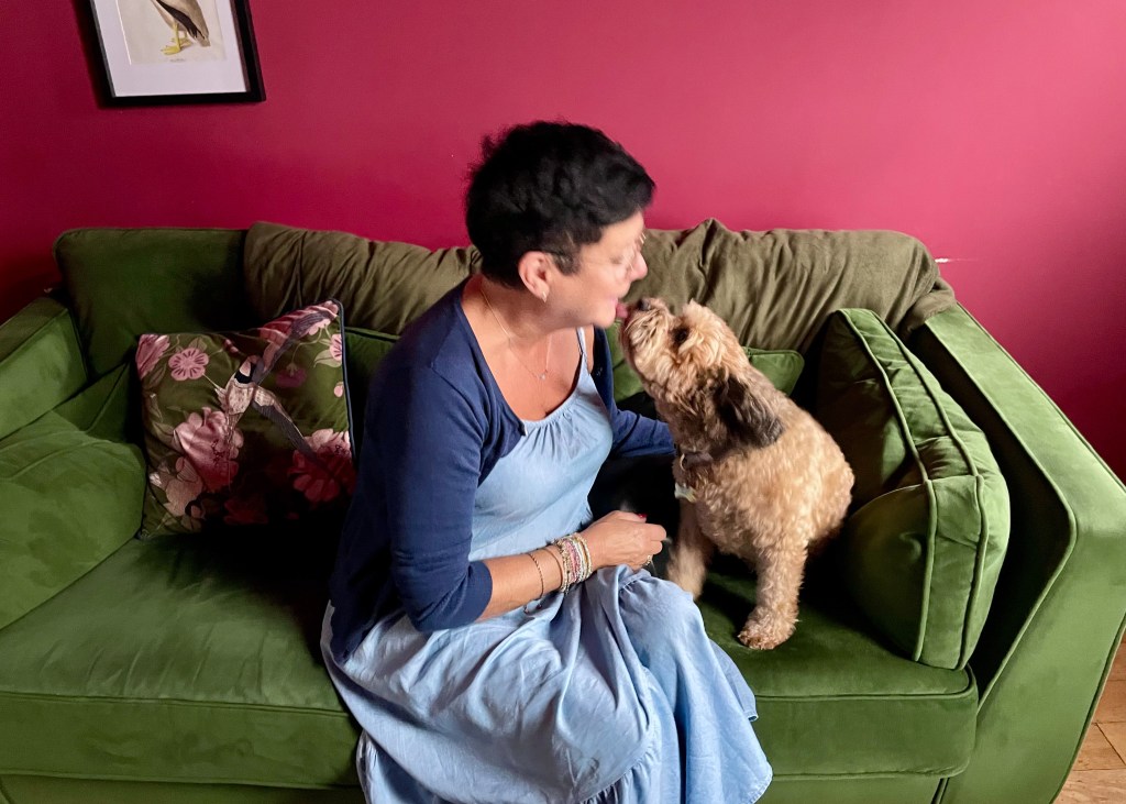 Before we can even knock, Percy’s owner Debbie opens the door to her Victorian two-up-two-down and greets us like old friends. We already know Percy won’t be here when we arrive—he’ll join us later when Debbie’s son Rik brings him home this afternoon after work. We have an hour with Debbie before she leaves for her cruise down to Portugal and Spain with girlfriends. She’s about my age, lively and vivacious, but was widowed three years ago. She bought this small terraced house to make a new start, decorating it in strong dark colours and opulent bird-themed wallpaper. The decoration, combined with the dim sun-starved rooms suggests the interior of a tasteful, upmarket bordello. Debbie makes us tea, shows us where to find what we need, and takes us through Percy’s routine. At nine o’clock, Rik’s boyfriend Matt arrives in his car to whisk Debbie to the train station. It’s just us now.