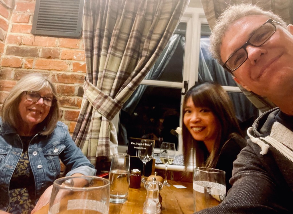 Our housesit host Debbie arrives back shortly after lunch. We say goodbye to Percy and wheel our suitcases back to the Macclesfield Travelodge, where we chill until we feel hungry. After more Thai food at the bustling Picturedrome—probably our last chance for good Asian food for some months—we make our way to Macclesfield’s premier quiz night at The Society Rooms, a vast Wetherspoons emporium. It’s hardly full of quizzers tonight, but by the time we kick off a modest seven teams have tossed their hats into the ring. Three teams of four are solidly Gen Z, three others are Millennials, and us…we’re the sole representatives of Gen X.