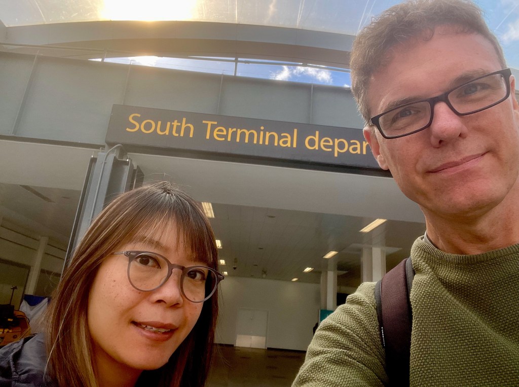 As we finish lunch at the airport, I quickly check that no new editing work has come in. Much to my chagrin, it has. I spend the following hour in the departures lounge with my laptop balanced on my knees tapping away. I manage to complete the job and snap the lid shut just as our gate is indicated.