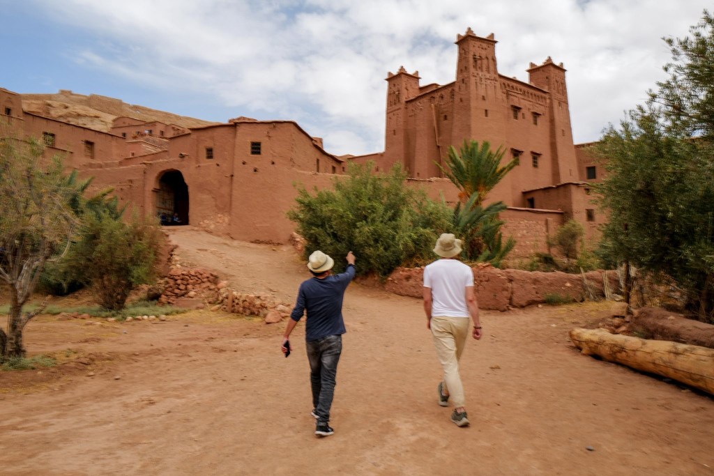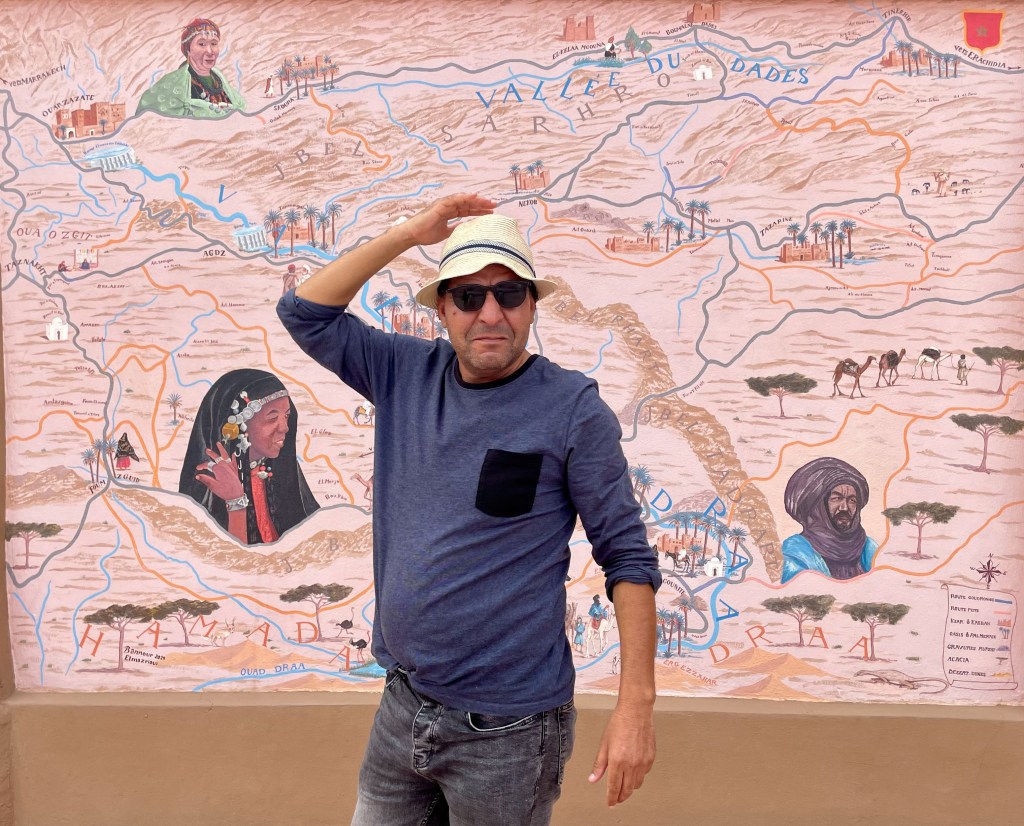 Back in the Landcruiser with Omar, we begin the long ride back to Marrakesh. There are further stops for expressos as we retrace yesterday’s journey, occasionally venturing onto alternative roads for variety. Yesterday’s torrential rain and dust storms have passed; today it’s all bright blue sky and open vistas. We stop at the town of Ouarzazade, home to Atlas Studios, the ‘Hollywood of the Desert’, where we wander around the sets used for international blockbusters including ‘Gladiator’ and ‘Game of Thrones’—the sets left in place to generate cash from tourists.