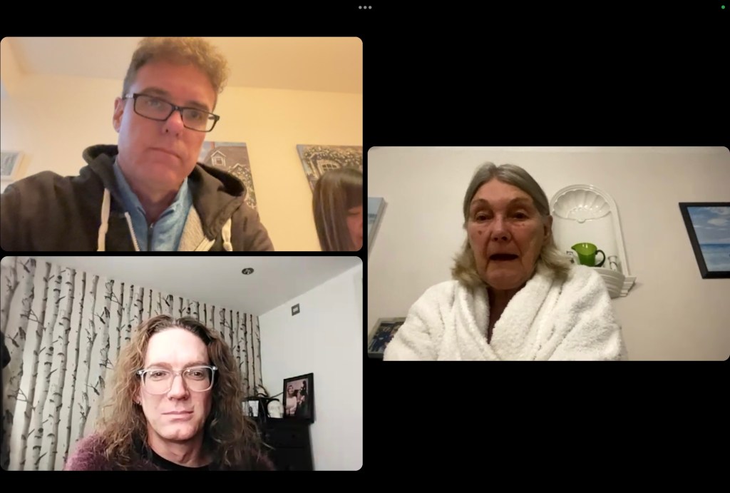 Mum’s been at a big Rock Choir shindig in Birmingham this weekend and is keen to share, so there’s a rare three-way video chat tonight: