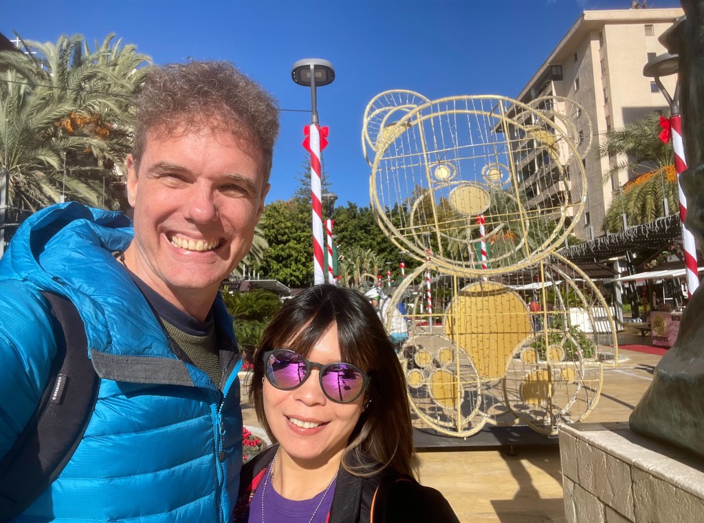 As we sit chatting, Estepona’s Christmas lights are switched on and the main street is suddenly lit up as brightly as Causeway Bay. The combination of the Christmas lights and a digestif of Spanish brandy rounds off a very special evening.