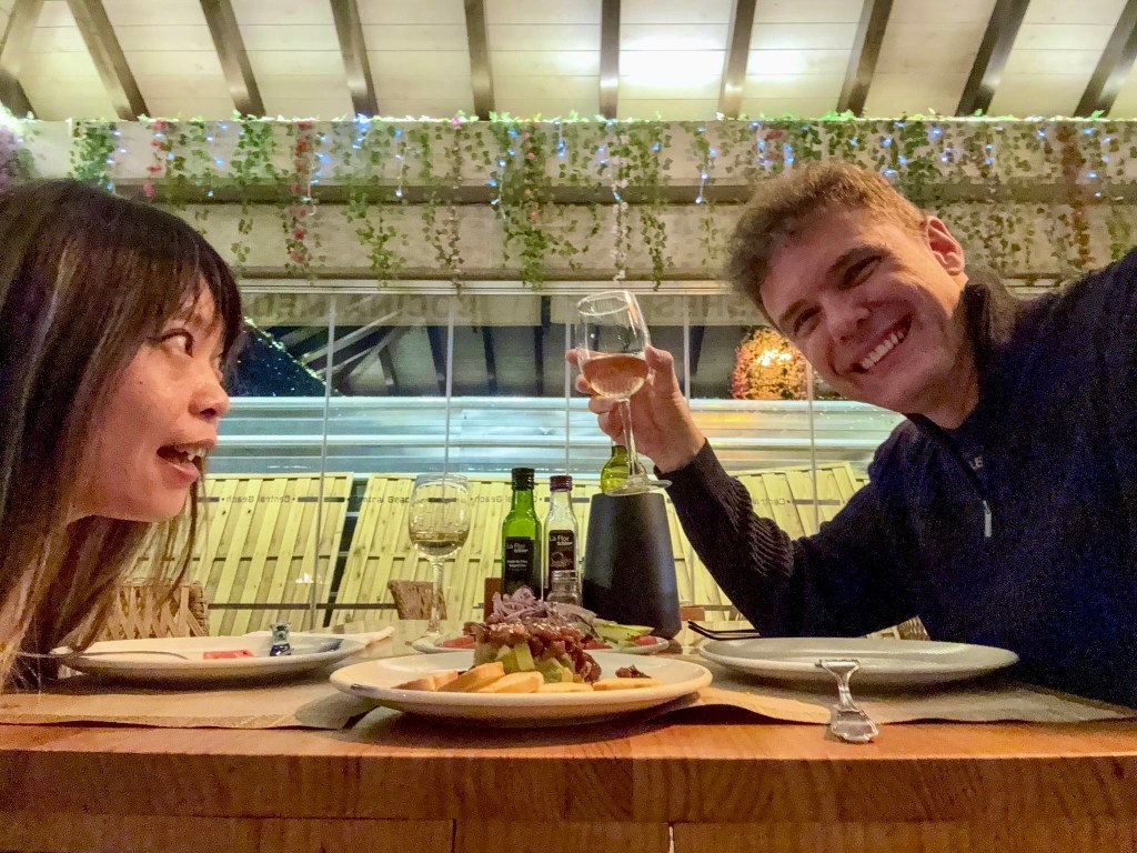 Brushing off churro flakes, we reluctantly leave the old town and hop on a bus back to Estepona, arriving back at dusk. The churros have left us so stuffed that we can’t possibly yet indulge in K’s birthday dinner. Instead, we stop by Leo’s Irish Pub for an (after)sundowner. It’s only our third visit to Leo’s, but the staff seem to recognise us and we feel very welcome.