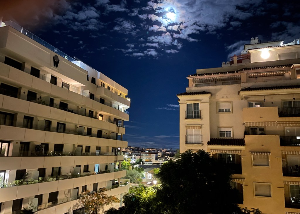 And that’s it. We wander back through Estepona’s quiet, charming streets and arrive home to a full moon rising over the old town. Goodnight Estepona. It’s been an absolute pleasure.