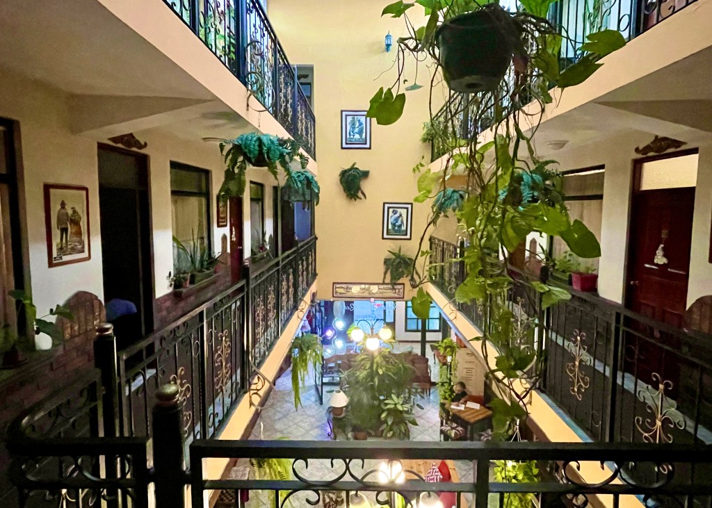 As we approach San José, the traffic thickens and we crawl the final few miles to our hotel. Hotel Amón Real is charming: three floors, rooms opening onto an atrium ringed by wrought-iron railings, and spacious rooms, if a tad dilapidated. It’s fine for two nights: