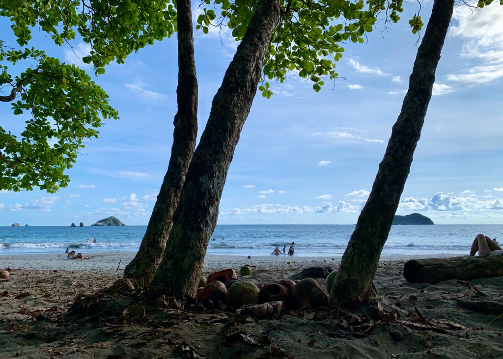 Manuel Antonio beach ticks every box: rural, jungle-backed, shady, quiet, sandy, warm shallow water. And monkeys. Panamanian white-faced capuchins, apparently. It’s far too long since we’ve sat on a sandy rural beach and frolicked in tropical seawater. Naplio didn’t cut it: stone beach, no shade, cold water. The water was even colder in Bodrum. Ko Samui had sandy beaches and warm water, but was semi-rural at best. We’d have to go back three years to our last summer in Hong Kong for a beaching day that could compete in the same league as here.