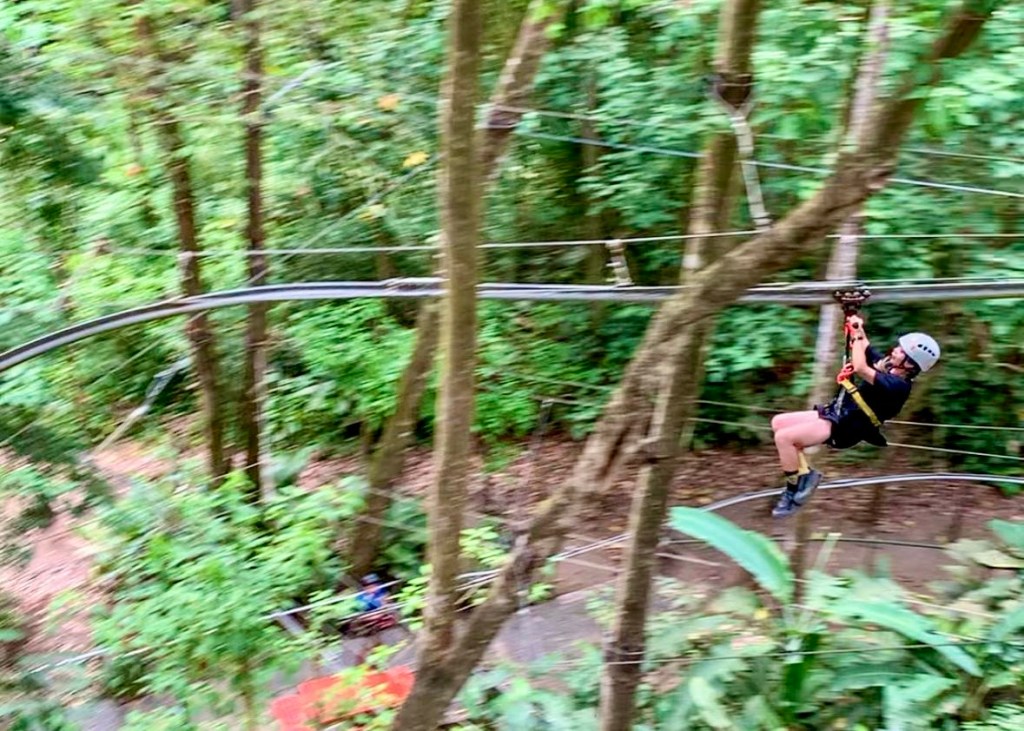I now see this is no conventional zipline. The clue is in the name: it’s a ‘zipcoaster’ that drops to the jungle floor in multiple twists, turns, and sudden plunges. K goes first while I film her 90-second descent. Then it’s my turn. I step off the platform into thin air. I just about stomach the first drop, but keep my eyes tightly shut for the others, opening them only for the slower glides between the plunges. Tarzan I am not. Not a moment too soon, I reach the bottom and gladly plant my feet back on firm ground.
