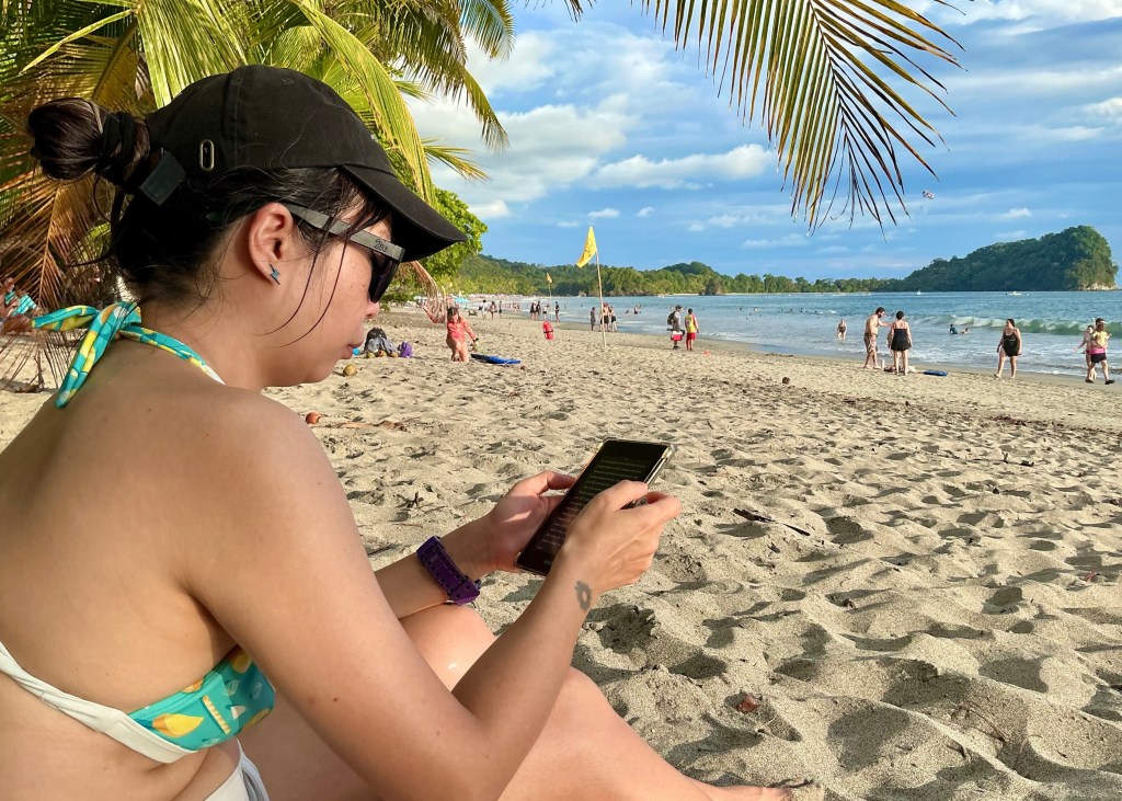 Before leaving, we also fall into conversation with our waitress. With her punky makeup and tattoos, she’d look more at home in Madrid than here. Her English is faultless. She only moved here from San José two months ago and now balances two jobs: bookkeeping online for an employer in San José from seven to four, then waiting tables from five to ten. All the while she’s saving to start her own business, perhaps importing quality bikinis from Brazil to sell in Costa Rica. I can’t quite put my finger on why, but she reminds me both of Yana and Ashley — two very different people — in their twenties. Something about her just seems to carry a similar energy.