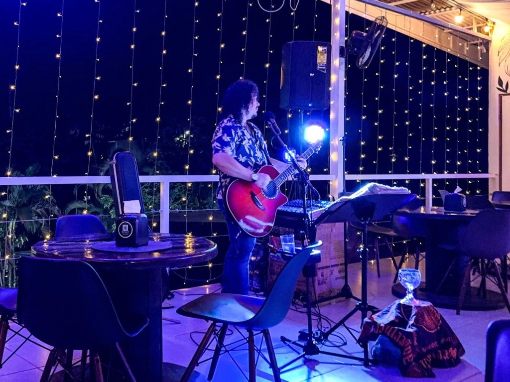 At dinner, we return to the most affordable place in the village: Sunset Bar, where we stuck a pin into a world map a few days ago. As we arrive, a lone guitarist is playing to the only occupied table. We applaud politely as he cycles through the same bar standards that frustrated musicians have been churning out the world over for decades: Knockin’ On Heaven’s Door, Tears in Heaven, Imagine. But he also throws in a few you don’t hear in every tourist bar on the planet: first, George Harrison’s Something, followed by Bread’s Guitar Man. My applause turns from polite to borderline enthusiastic. Soon, we’re the only customers and between songs we get talking. He tells me he learned the songs long ago from his dad’s “long player” (his words!) collection. I tell him mine used to play Bread songs in bars and show him a photo of dad on stage in 1976. A good twenty years younger than me, he gasps at how long ago that seems. The photo (and I) must seen almost jurassic to him.