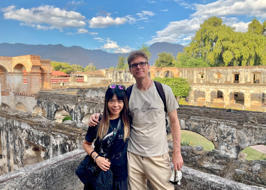 Dinner tonight is Thai. We sit in a quiet courtyard surrounded by tropical plants, order curries and beers, and fall into conversation with owner Pablo, who lived all over Thailand for 18 years before returning to Guatemala to open the restaurant two years ago. We tell him about our plans for Thailand later this year. He dismisses Hua Hin as dull but rattles off nearby places worth a day trip. We nod, but Hua Hin will remain a base for us. Logistical necessity outweighs Pablo’s informed wisdom: K needs to be close to Bangkok for a second round of dental work.